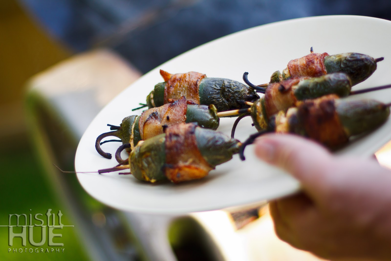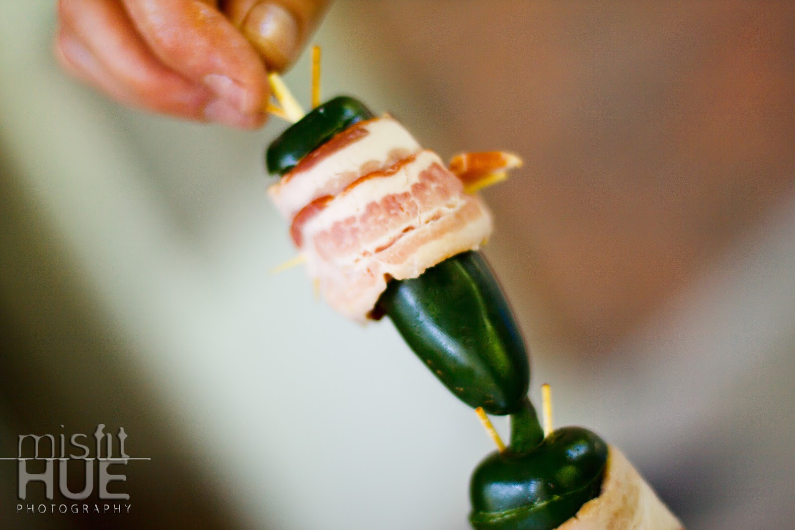 kev's recipe is no longer in the testing stage. he should have a stand at the local produce row selling these stuffed jalapenos to folks like me who LOVE a spicy treat... with BACON. did i say bacon? why yes, i did!